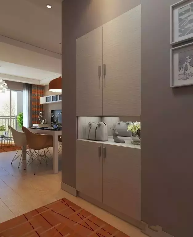 玄关的收纳功能远远超过我们的想象,而且充分利用了进门处墙里面的狭小空间,最大限度满足了收纳的功能,又减轻了卧室衣柜的压力。